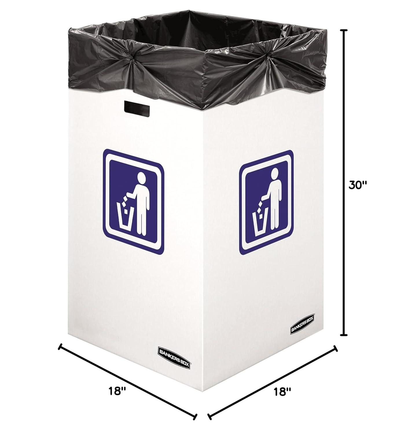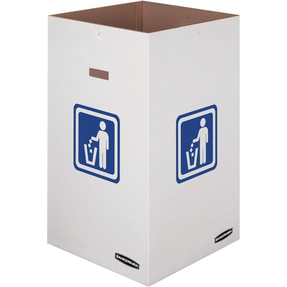 A value option for your recycling and waste disposal needs. Bankers Box Corrugated Cardboard Trash and Recycling Containers are easy to use and assemble in seconds. Engineered and tested to provide long-lasting usage and made in the USA. Ligthtweight with strong handles. Lids with icons clearly identifying intended use (Waste, Paper Recycling or Bottles) are sold separately to fit the 50 and 42 gallon bins. See items 7320501, 7320401 and 7320301.