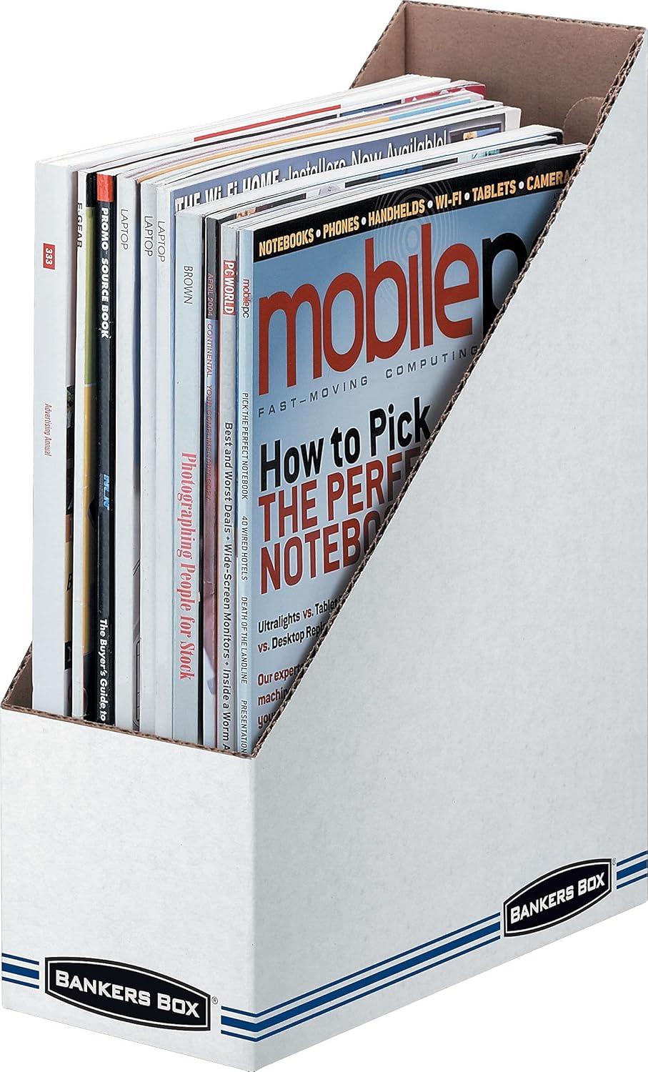 The Fellowes Bankers Box Stor/File White Magazine File is a sturdy, economical choice for keeping daily reference materials organized. These convenient storage files can be used to sort and hold a variety of letter size magazines, catalogs, file folders, project binders, and periodicals. Plus a white finish means they are unobtrusive and easy to label.