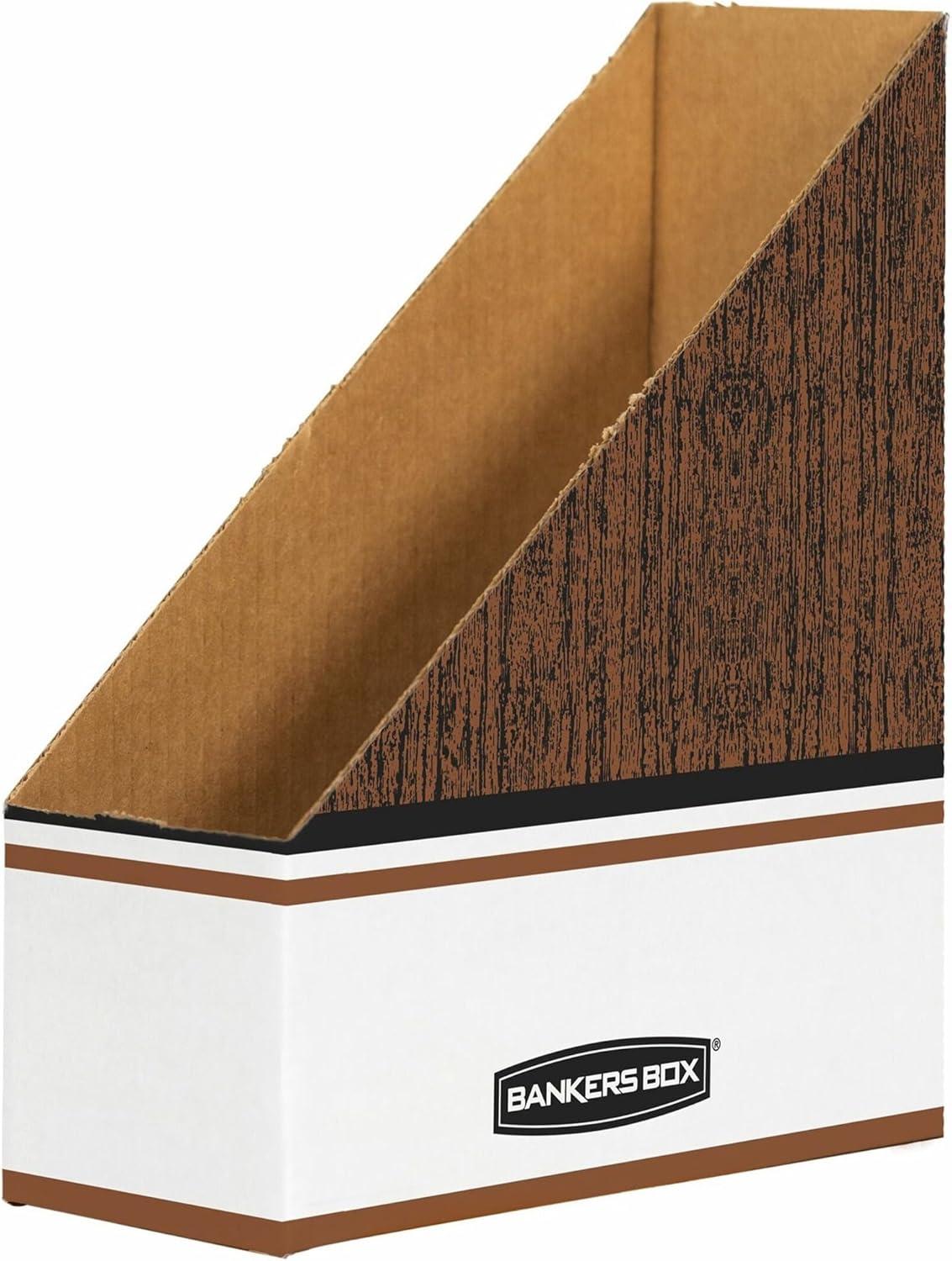 Bankers Box 10723 Corrugated Cardboard Magazine File, 4 x 9 1/4 x 11 3/4, White (Case of 12)(Wood Grain - Oversized)