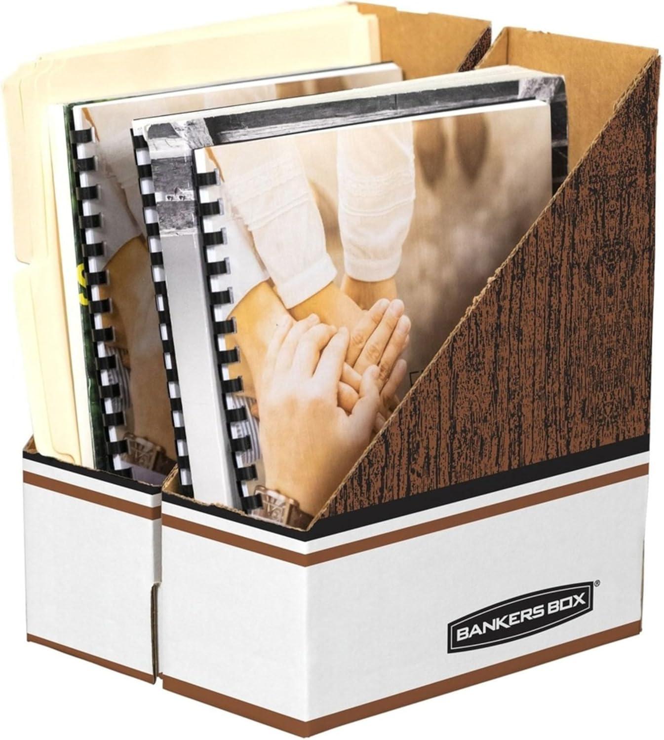 imageBankers Box 10723 Corrugated Cardboard Magazine File 4 x 9 14 x 11 34 White Case of 12Wood Grain