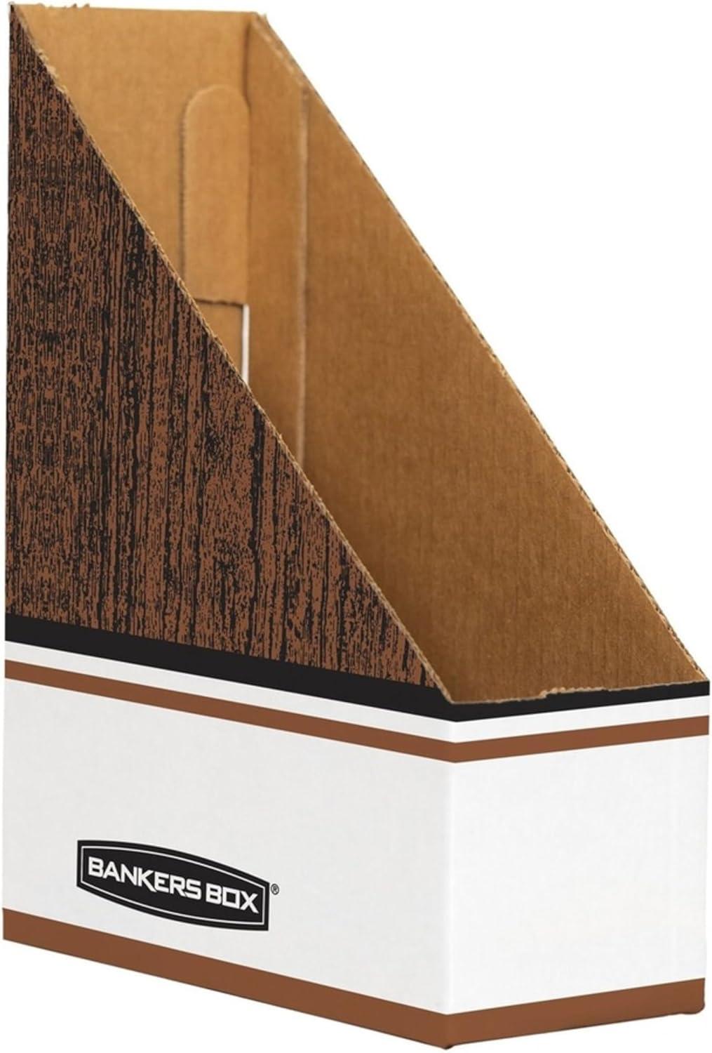 Bankers Box 10723 Corrugated Cardboard Magazine File, 4 x 9 1/4 x 11 3/4, White (Case of 12)(Wood Grain – Oversized)