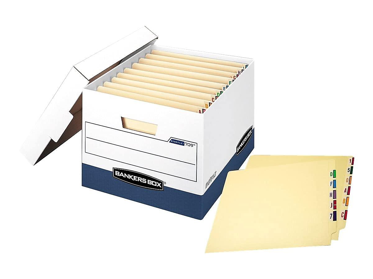 Ideal for archiving and storing end tab letter/legal patient files. Heavy-duty, triple end, double side, double bottom construction stacks up stronger and withstands frequent handling. FastFold® quick and easy assembly. Reinforced tear-resistant hand holes make box comfortable to carry. Deep, locking lift-off lid stays in place for secure file storage.