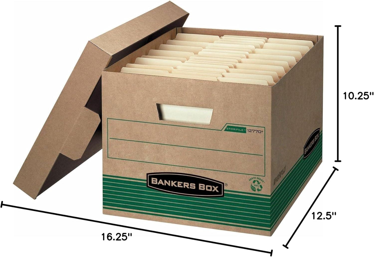 Bankers Box 12 Pack STOR/FILE Medium-Duty 100% Recycled File Storage Boxes, FastFold, Lift-Off Lid, Letter/Legal, Kraft/Green(20-Pack)