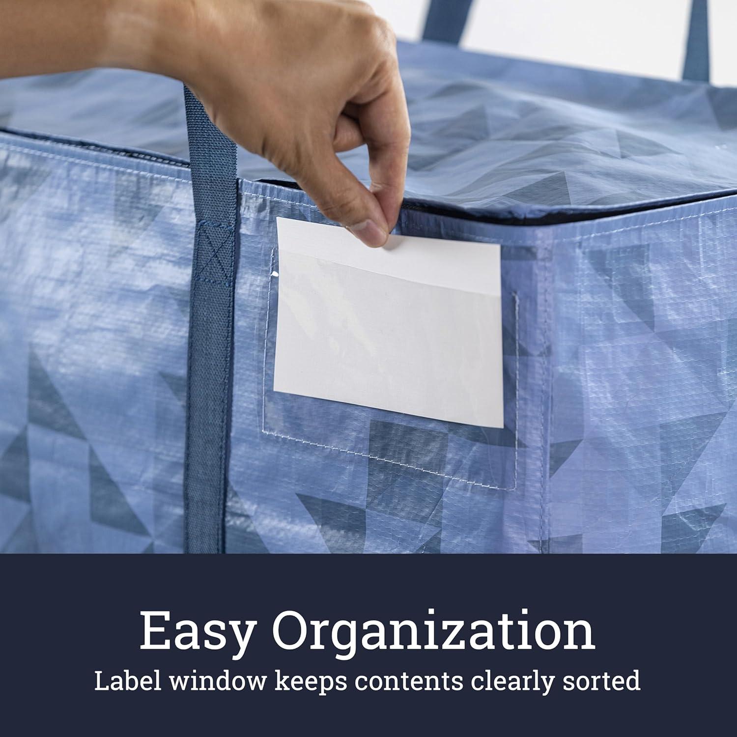 Make moving and organizing a breeze with these heavy-duty moving bags—designed to handle life’s heaviest loads and busiest seasons. Built with reinforced handles, tear-resistant fabric, and smooth dual zippers, these bags are ready to haul everything from bedding and books to laundry and off-season gear. Their oversized capacity means each bag replaces multiple bulky boxes, saving space and simplifying your move or storage setup. Whether you're rotating winter coats and summer linens or packing for a dorm room, these bags offer smart seasonal storage with multi-use flexibility. Lightweight yet spacious, they fit easily in car trunks and backseats, and fold flat when not in use. Plus, a handy label slot makes it easy to identify contents at a glance.