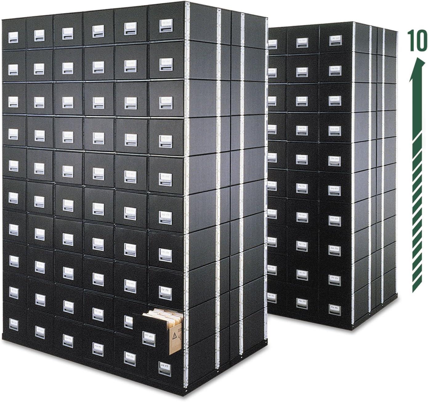 Stacks 10 high – The higher the drawer system stacks, the more space, time and money you save. Steel framework interlocks vertically and horizontally to withstand the heaviest day-to-day usage. Our strongest system is also the easiest to assemble. Drawers snap together with poly-lock technology and are reinforced with steel wire. Steel frame and reinforced drawers ensure full drawers open and close smoothly. Factory installed, high-impact drawer handle with index card holder for fast file retrieval (index cards included).