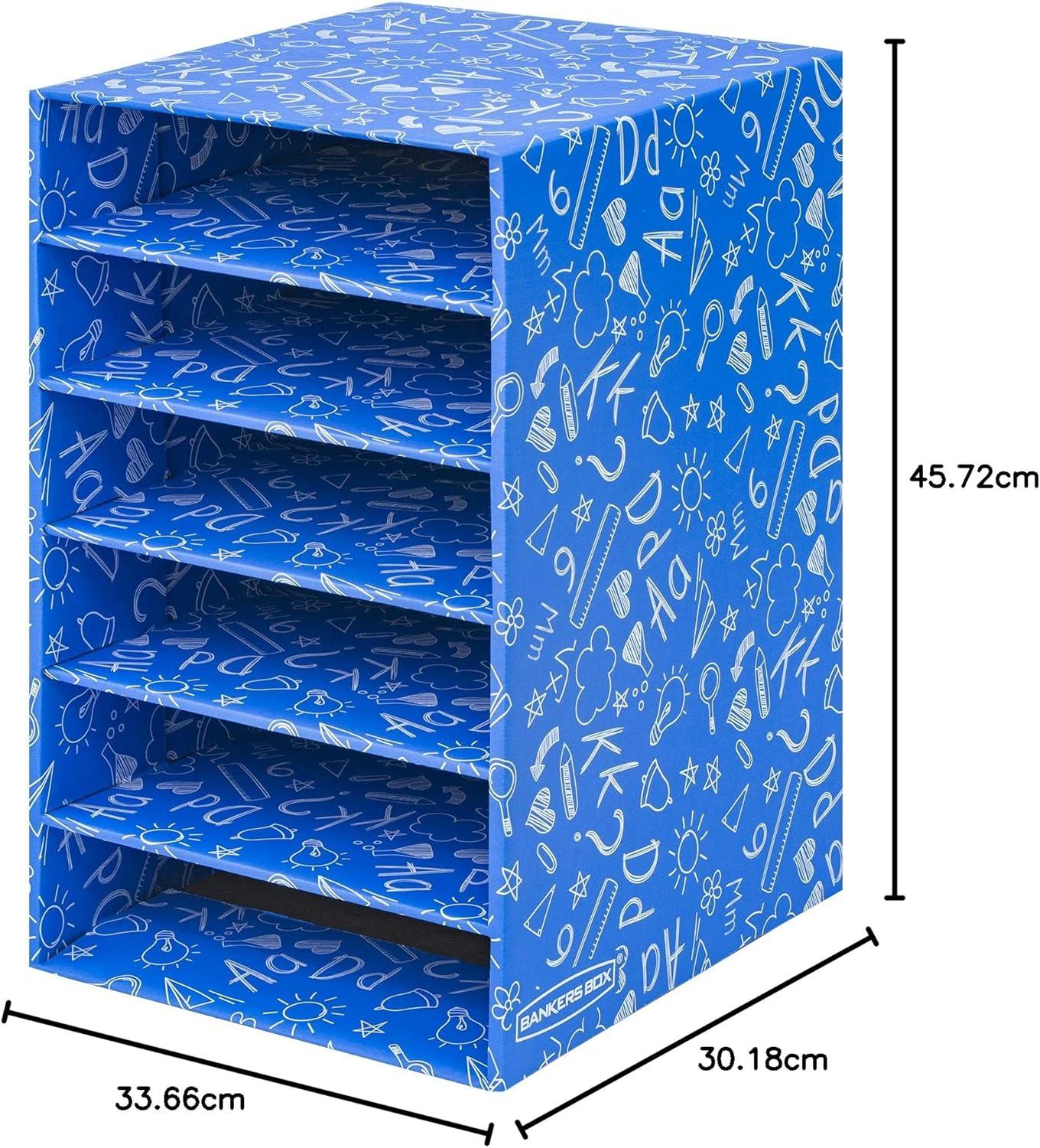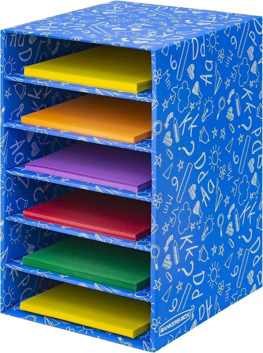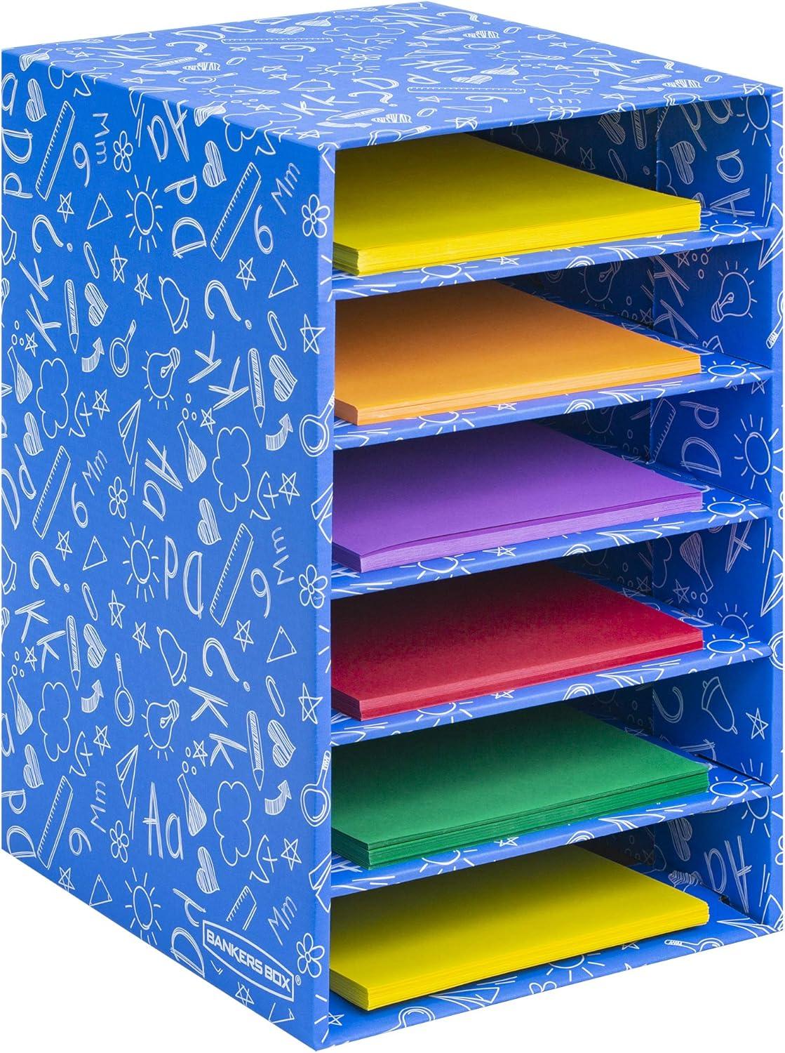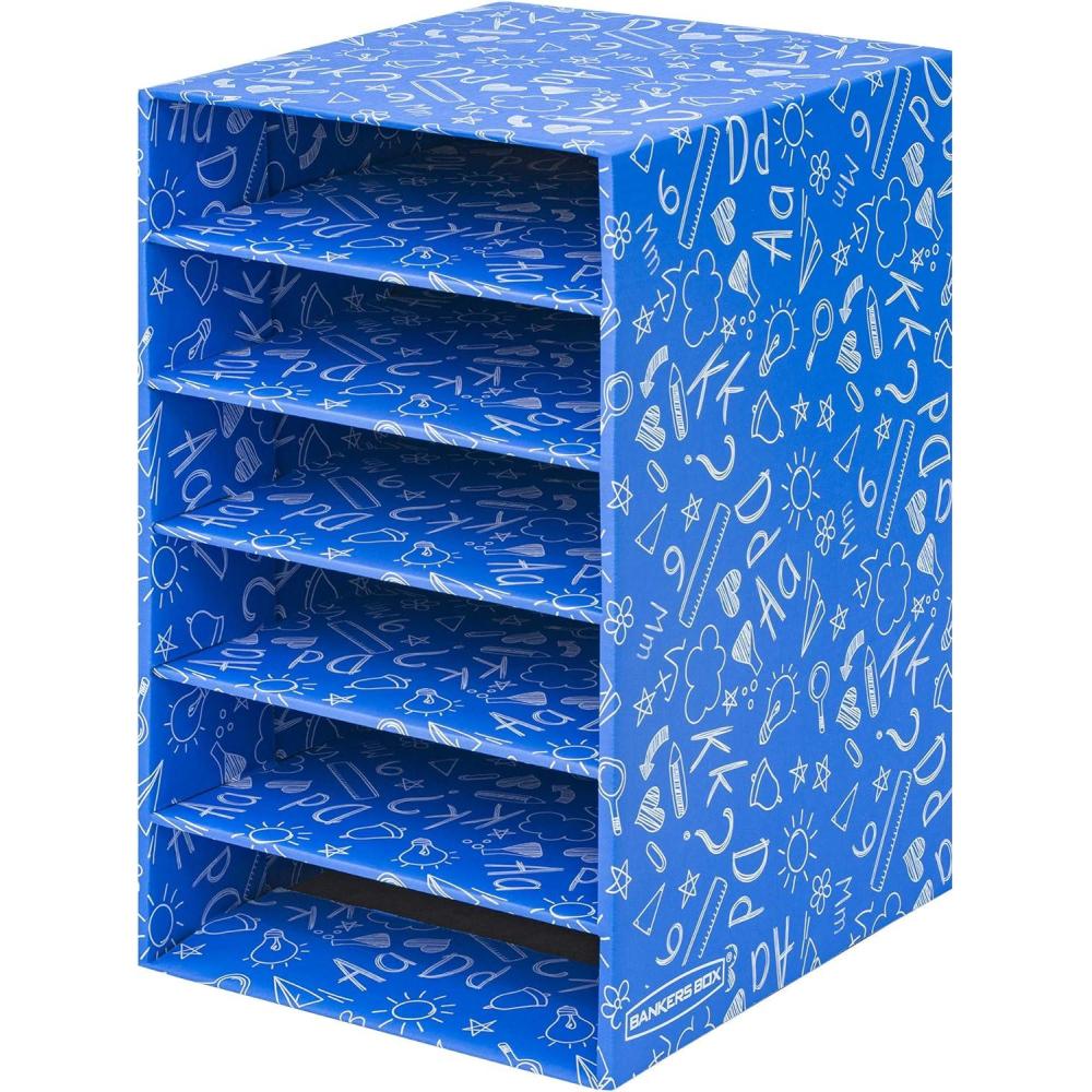 The Bankers Box 6 Shelf Organizer stores, protects, and organizes printouts, reading materials, assignments, and art supplies in the classroom. Sturdy multi-layer construction plus easy assembly. External unit dimensions: 18″H x 12″W x 13 1/4″D. 60% recycled content.