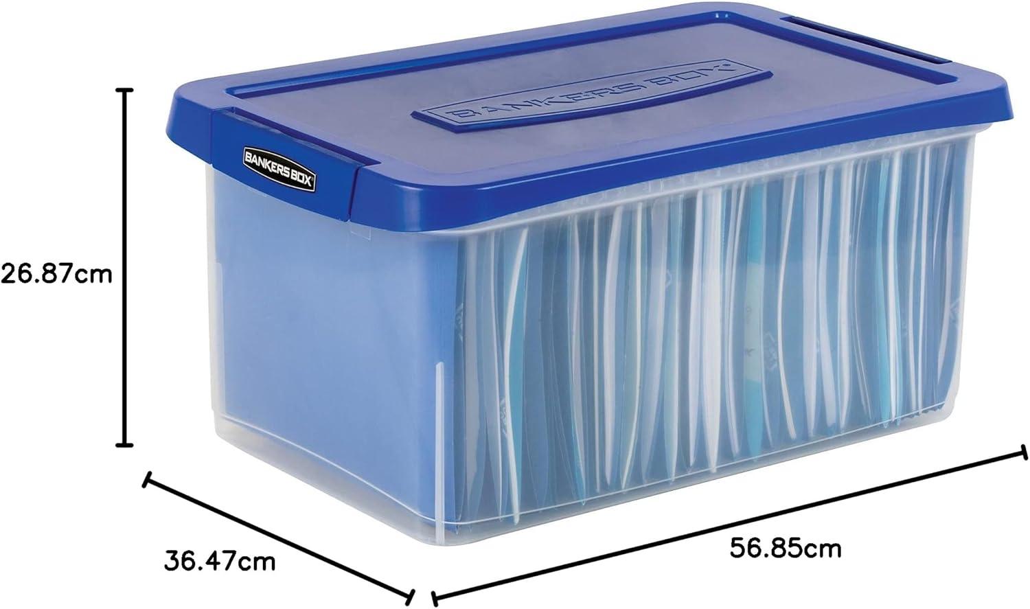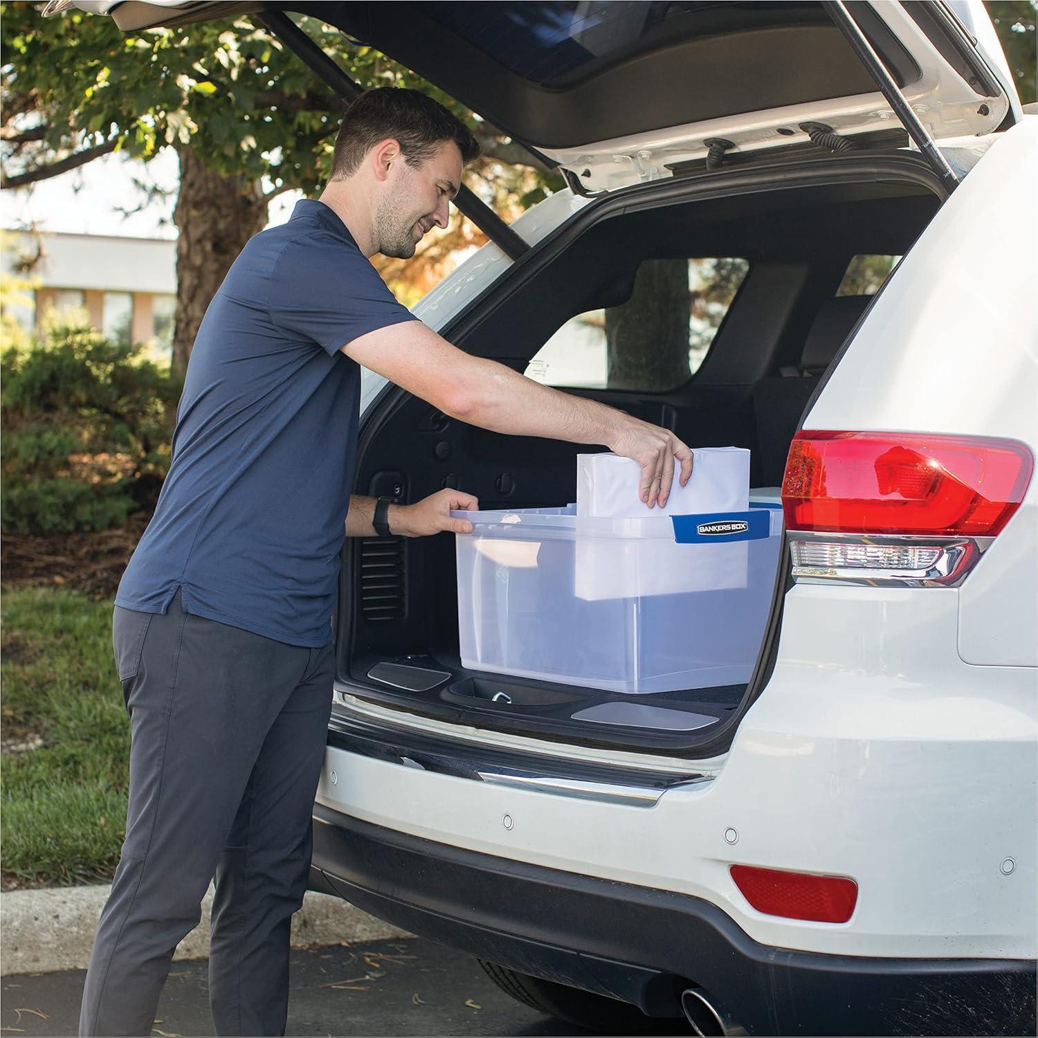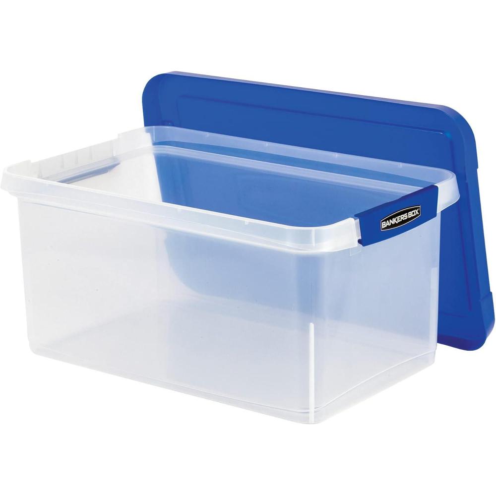 The Bankers Box Heavy Duty Portable Plastic File Box provides organized and secure storage and transport of letter-size documents. Made with durable plastic construction, the Portable Plastic File Box features reinforced corners for added strength. Modular design for easy stackability. Lid also features a handy organizer compartment. Built-in hanging rail keeps letter-sized files organized and accessible. Comfortable handle offers easy lifting and the latching lid ensures secure transport. TAA compliant.