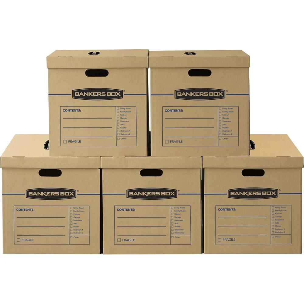Bankers Box Classic Moving Box 30 Pack Kit, Reinforced Handles, Tape-Free Assembly, Box with Lid, 5 Small 20 Medium and 5 Large Boxes (7716502)