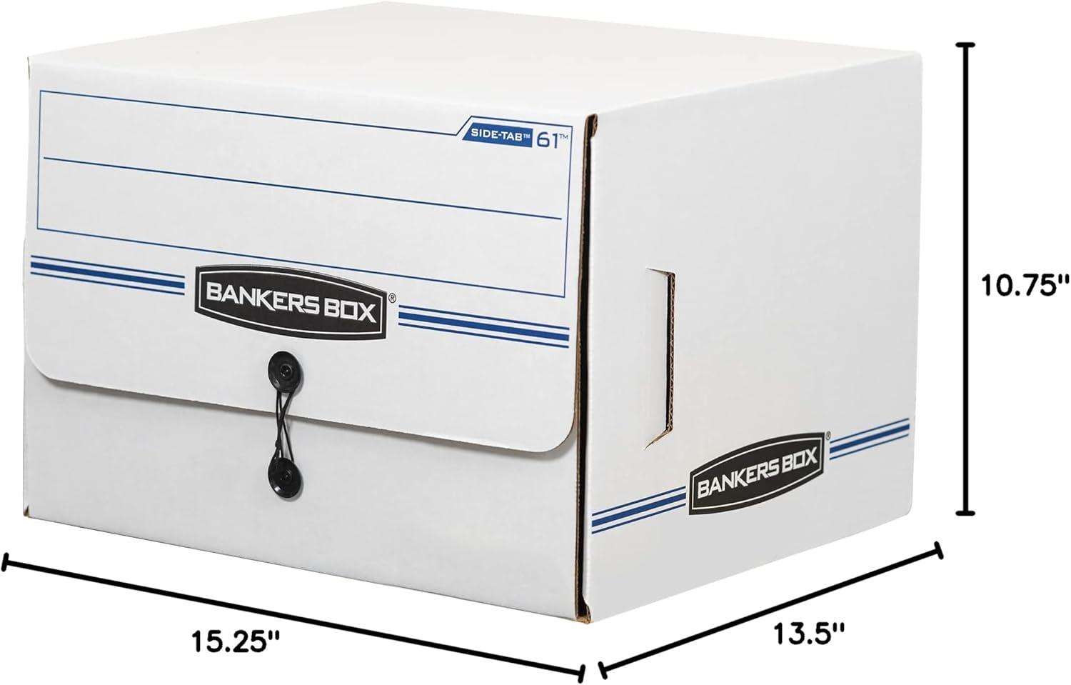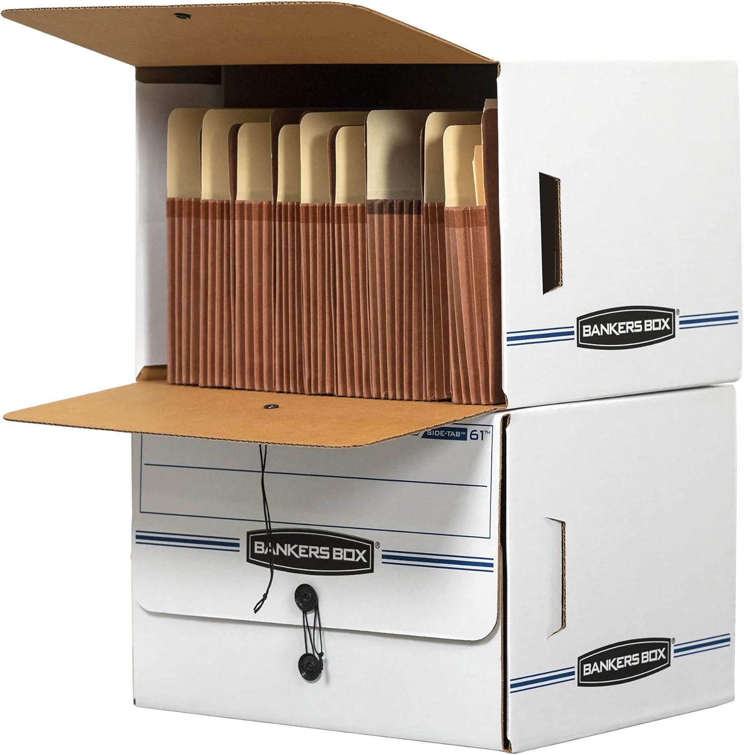 Drop front lid provides easy access to end tab patient files and medical records. Designed for shelf storage, these sturdy units stack 2-high. Center divider holds file folders upright for easy organization. String and button closure keeps files securely stored. Letter size; inside measurements 10.75×15.25×13.50. 12-count.