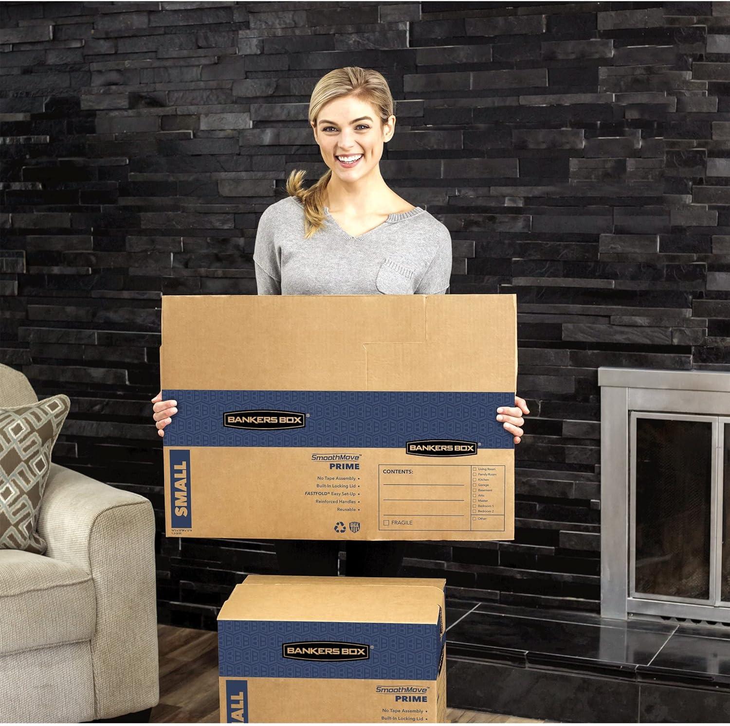 Bankers Box Small Prime Moving Box 15 Pack, Reinforced Handles, Tape-Free Assembly, Attached Lid, 16-in x 12-in x 12-in (0062711)(Medium)