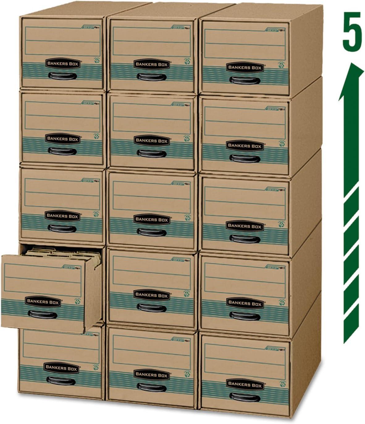 imageBankers Box 6 Pack STORDRAWER STEEL PLUS 100 Recycled Extra Space Saving Filing Cabinet Stacks 5 High Letter KraftGreen