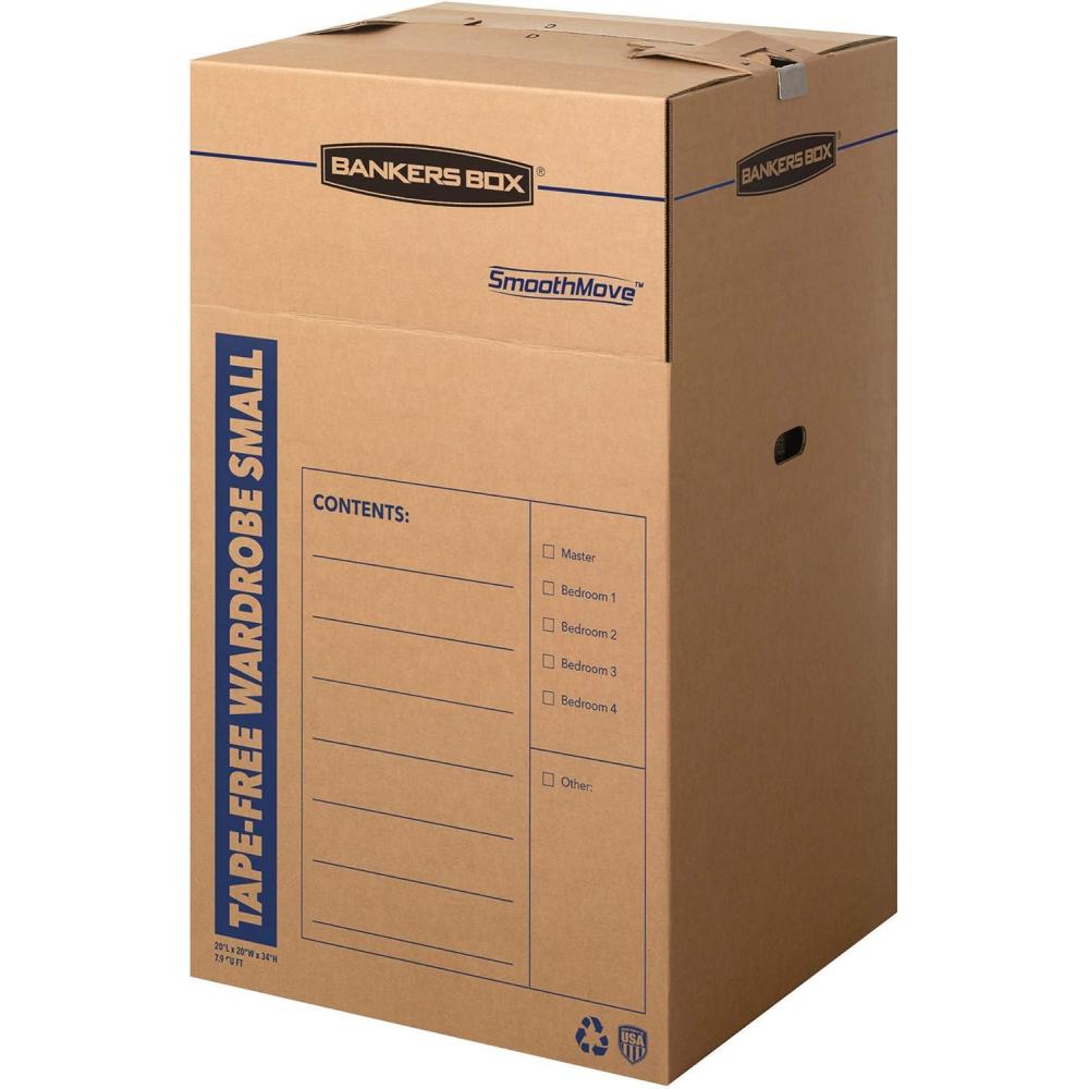 No tape required – secure on top with locking tab feature. Easy crashlock assembly – just open and done! Move apparel wrinkle-free closet to closet. Includes 24″ bar to accommodate up to 2 linear feet of apparel. Closes completely for safety and keeps your items clean for long-term storage. Strong, durable handles for comfortable moving and lifting. Reusable, recyclable and made in the USA.